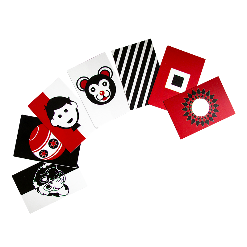 Se compone por 16 tarjetas en colores blanco negro y rojo para estimular el sentido visual del bebé además de fortalecer por medio del ejercicio su capacidad de reconocimiento Fabricadas en plástico de primera Contamos con certificado de Conformidad de Producto (SGS) el cual asegura que nuestros productos y su material de fabricación son 100% seguros para los niños